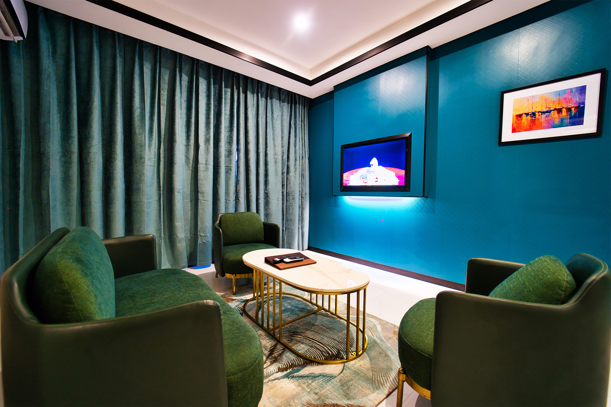 Our Executive Suites are luxuriously designed and enhanced with a separate living room. This suite comes with a King-size bed with linen and towels, Smart TV, Work Desk, City View, Wifi, Safe, Slippers, Hair Dryer and 24 hour Room Service.